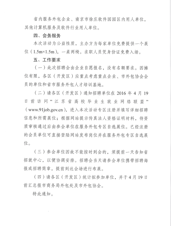 關(guān)于組織開(kāi)展2016年服務(wù)外包人才專場(chǎng)招聘活動(dòng)的通知