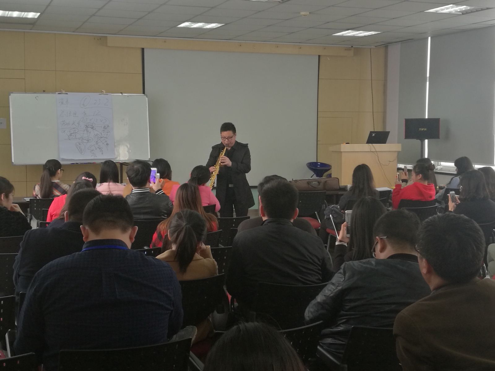 此次活動(dòng)的課程分別是“新生代員工關(guān)系管理“和”企業(yè)勞動(dòng)關(guān)系法律風(fēng)險(xiǎn)防控“。主講老師分別從”一招三式解決代際沖突“、”新生代員工管理技巧“、”勞動(dòng)法律政策發(fā)展走勢(shì)“”理念經(jīng)典案例盤點(diǎn)“等四個(gè)方面講解了本次主題課程。在中午休息時(shí)分,江蘇領(lǐng)航人才開(kāi)發(fā)有限公司邀請(qǐng)到前線歌舞團(tuán)、國(guó)家一級(jí)演員顧長(zhǎng)城老師為參會(huì)人員做了一場(chǎng)薩克斯魅力賞析沙龍,讓大家在上午緊張的課程學(xué)習(xí)之余,放松心情,體會(huì)音樂(lè)的魅力。
